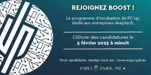 Fort de la culture entrepreneuriale de l’ESPCI Paris – PSL, PC’up accompagne depuis 2016 les chercheurs-entrepreneurs en s’appuyant sur les points forts de l’ESPCI et de son écosystème d’innovation. Notre mission est de faciliter la création d’entreprises deeptech, en entourant les entrepreneurs des compétences uniques de notre écosystème.