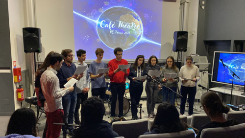 Pour clôturer une journée déjà riche, les étudiants de l’école ont organisé un "café théâtre", véritable spectacle/concert qui permet de découvrir les multiples talents de nos ingénieures et ingénieurs. Chant, musique, théâtre... des performances bluffantes !
