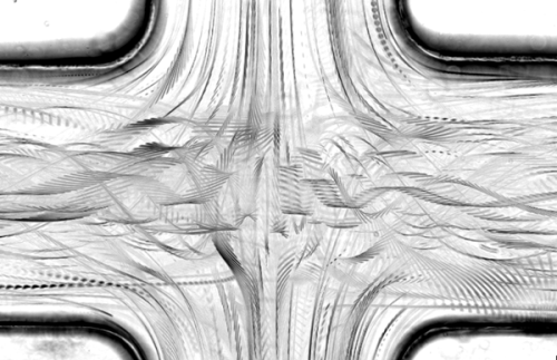 Cette année, le public a choisi la photo proposée par Marine Aulnette (avec Anke Lindner et Noa Burshtein), chercheuse au laboratoire PMMH, qui montre une très belle vue de fibres transportées à travers un vortex de Burger dans dispositif microfluidique croisé.