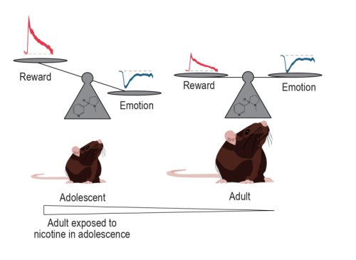Les chercheurs ont d’abord constaté que les souris adolescentes avaient une sensibilité accrue aux effets gratifiants de la nicotine, tant au niveau physiologique que comportemental. Les chercheurs ont ensuite montré que des souris exposées à la nicotine au début de leur adolescence manifestaient, une fois adultes, des comportements et des réponses physiologiques similaires à ceux observés chez les jeunes souris adolescentes. En d’autres termes, l’exposition à la nicotine durant l’adolescence semblait figer ces animaux dans un état de vulnérabilité prolongé, caractérisé par une sensibilité accrue aux effets gratifiants de la nicotine et une diminution de leurs réponses aux effets anxiogènes de la substance.