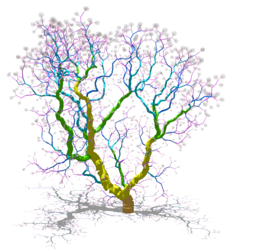 La partie aérienne d’un arbre peut être vue comme la réponse biologique au problème d’ingénierie suivant : réaliser une structure mécaniquement stable, la plus légère possible et permettant un accès maximal à la lumière. Pour répondre à ce cahier des charges, l’arbre croît, en produisant à chaque étape de sa croissance des “unités” de tailles similaires. Il peut donc apparaître paradoxal que sa structure soient en général auto-similaire, ses branches étant statistiquement plus courtes et plus fines près des feuilles. Or, comme les branches ne peuvent pas croitre en longueur d’une année sur l’autre, cette hiérarchisation n’est possible que par l’agrégation bout-à-bout de différentes branches et la perte de branches latérales. L’architecture d’un arbre est donc le résultat complexe d’une stratégie de croissance impliquant la création de nouvelles branches et la perte d’anciennes. Lors de ce séminaire, je présenterai un modèle qui vise à mieux comprendre ces stratégies de croissance.