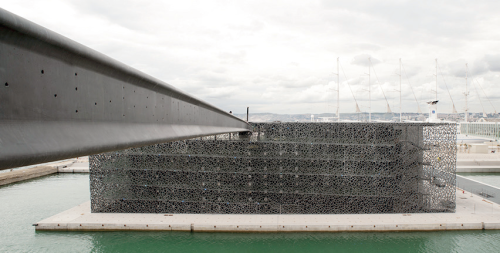 – Mucem à Marseille et sa structure externe en poteaux arborescents et résilles,