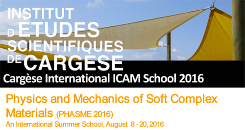 Du 8 au 20 août prochain se tiendra à l’Institut d’études scientifiques de Cargèse en Corse l’école d’été : PHASME, "Physics and Mechanics of Soft Complex Materials". Organisée dans le cadre de l’I2CAM, cette école réunira de nombreux spécialistes du monde entier autour des phénomènes qui se produisent à la frontière entre Physique et Mécanique.
