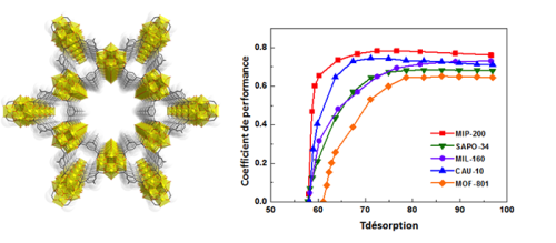 Afin de récupérer les sources de chaleurs issues de procédés industriels ou de l’énergie solaire, l’utilisation d’adsorbants d’eau est une voie prometteuse (ie des molécules capables de fixer l’eau à leur surface). Typiquement la température de l’eau chaude générée dans des habitations équipées de cogénérateurs de chaleur n’excède pas 63 °C et elle peut être utilisée pour des systèmes de refroidissements ou des pompes à chaleur. Les systèmes actuels utilisent des solides poreux inorganiques commerciaux (de type zéolithes ou assimilés) qui possèdent cependant des températures de régénération trop élevées (>75°C) et un volume poreux limité affichant une efficacité énergétique non optimale.