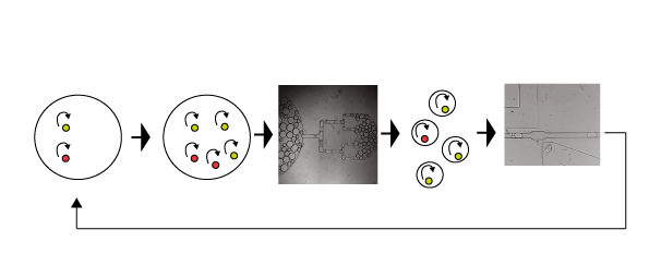 reproduction and evolution cycles using microfluidics