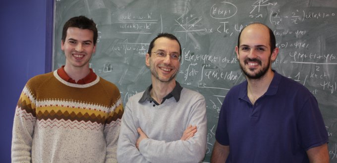 De gauche à droite : Thomas Salez, Élie Raphaël & Michael Benzaquen (en collaboration avec Yu Chai, Joshua D. McGraw, Kari Dalnoki-Veress et James A. Forrest) (crédits : ©ESPCI ParisTech).