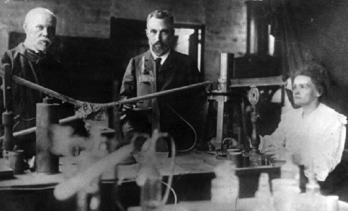 En 1897, Marie Curie se lance dans une thèse sur l’étude des rayons uraniques fraîchement découverts par Henri Becquerel. A l’aide d’appareils de mesure à quartz piézo-électrique conçus par Pierre Curie, elle parvient à mesurer de manière précise le rayonnement émis par certains matériaux, notamment l’uranium puis le thorium dont elle parvient à mesurer l’activité qui dépend de l’élément, mais aussi de la quantité présente. Elle s’intéresse également à une multitude d’autres éléments, qui se révèlent inactifs.