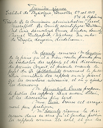 Procès verbaux des réunions à Bruxelles du comité scientifique de l'Institut international de Physique Solvay. Extrait d'une réunion du 27 octobre 1913