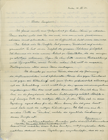 Dans le cas du fonds Paul Langevin, près de 8500 documents ont été « récolés », c’est à dire décrits pièce par pièce, restaurés s’il le fallait, mis à plat et reconditionnés dans du matériel adapté, avant d’être envoyés à la numérisation avec les consignes de nommage des fichiers, de la gestion des pages blanches, etc… Au retour du prestataire, le contrôle des images et des métadonnées d’une part, puis leur chargement dans la plateforme de diffusion numérique, en l’occurrence la Bibliothèque numérique de PSL, terminent le cycle des opérations. Pendant ce temps, se déroulent en parallèle l’étude des droits de diffusion et la recherche des ayants droit. Les oeuvres de Paul Langevin sont dans le domaine public depuis le 1er janvier 2017, mais ce n’est pas le cas de tous les documents du fonds. Une recherche auteur par auteur a été nécessaire afin de déterminer les ayants droit et d’obtenir les autorisations de diffusion. Ce besoin a fait l’objet d’une consultation juridique et d’une étude généalogique par des cabinets spécialisés.