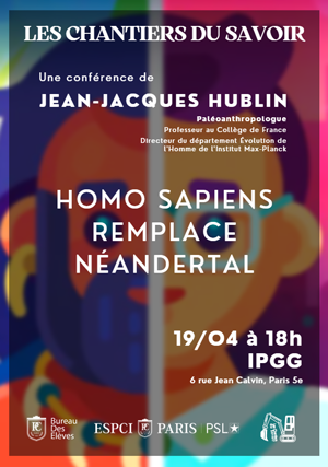 Le 19/04, nous aurons le plaisir d’accueillir à l’école Jean-Jacques Hublin, paléoanthropologue et professeur au Collège de France, pour une conférence des Chantiers du Savoir sur le thème : "Homo Sapiens remplace Néandertal"