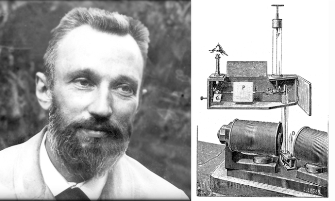 En 1880, Pierre Curie et son frère Jacques, alors âgés respectivement de 21 et 25 ans, découvrent le phénomène de piézoélectricité. C’est la propriété de certains cristaux, dont fait partie le quartz, d’émettre des petites quantités d’électricité lorsqu’ils sont comprimés ou étirés le long d’axes de symétrie particuliers. De cette découverte découle une invention nommée quartz piézoélectrique, un instrument de mesure des faibles charges électriques.