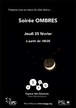 En marge de l’exposition PhotonFutur, l’ESPGG organise à l’ESPCI une soirée Ombres. Horaires et détails ici